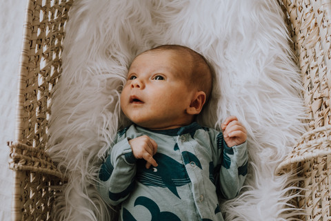 These are his 1 month photos, and I have to say he was so good during this shoot. I made the bed with a white duvet, tucked him into a white onesie and he worked the camera like the perfect little Gerber baby he is! We thought he'd be asleep the whole time considering her had just fed before we started and even gave him a small bottle not too long after, but he had his awake time through the whole shoot. As cute as sleeping babies may be, we got a little bit of personality out of him instead! He's a master of faces and sticking his tongue out!